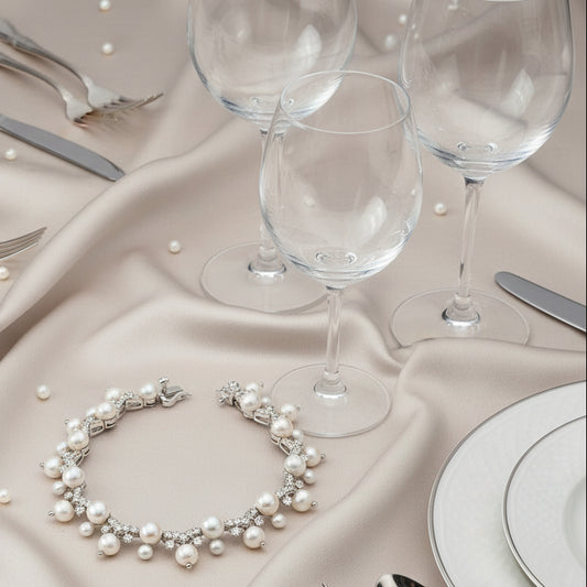 Our pearl jewellery set is an exquisite choice for bridal occasions, offering a perfect blend of elegance, luxury, and timeless beauty. Crafted with delicate silver accents and lustrous pearls, this set is designed to enhance the bride's radiant beauty on her special day. The shimmering pearls add a touch of sophistication and grace, making it ideal for both traditional and modern bridal looks. Whether in the form of jewelry, decor, or table settings, this set will elevate the ambiance of the wedding, creating a refined and memorable experience. The pearl jewellery set is the perfect way to celebrate love and new beginnings, adding a graceful, refined touch to any bridal celebration.